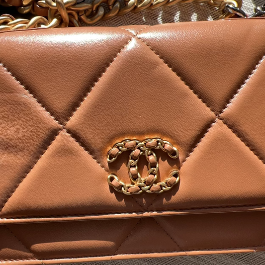Chanel Lambskin Quilted Chanel 19 Wallet On Chain WOC Brown