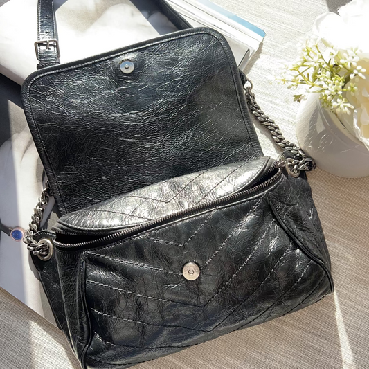 Saint Laurent Crinkled Calfskin Matelasse Monogram Niki Body Bag Black