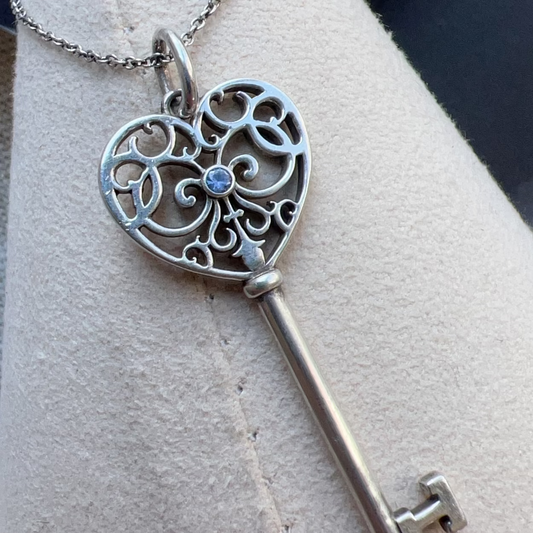 Tiffany & Co Sterling Silver Sapphire Enchant Heart Key Necklace