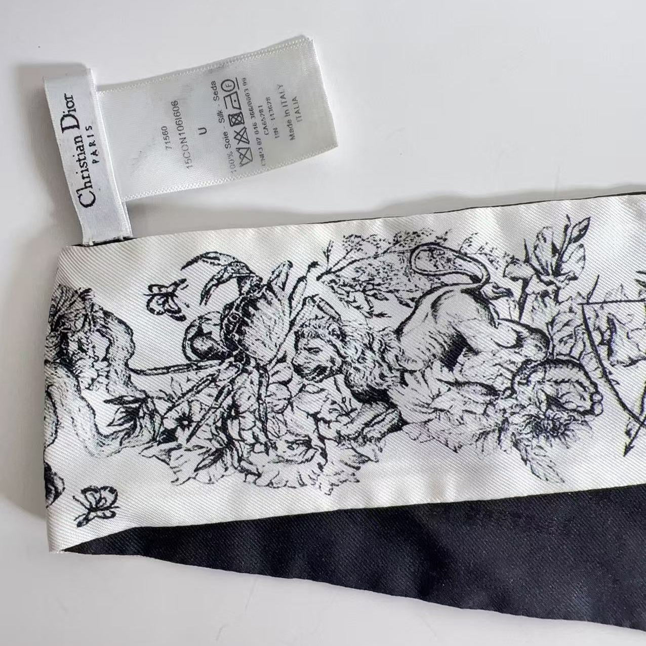 Christian Dior Silk Zodiac Mitzah Scarf White Black