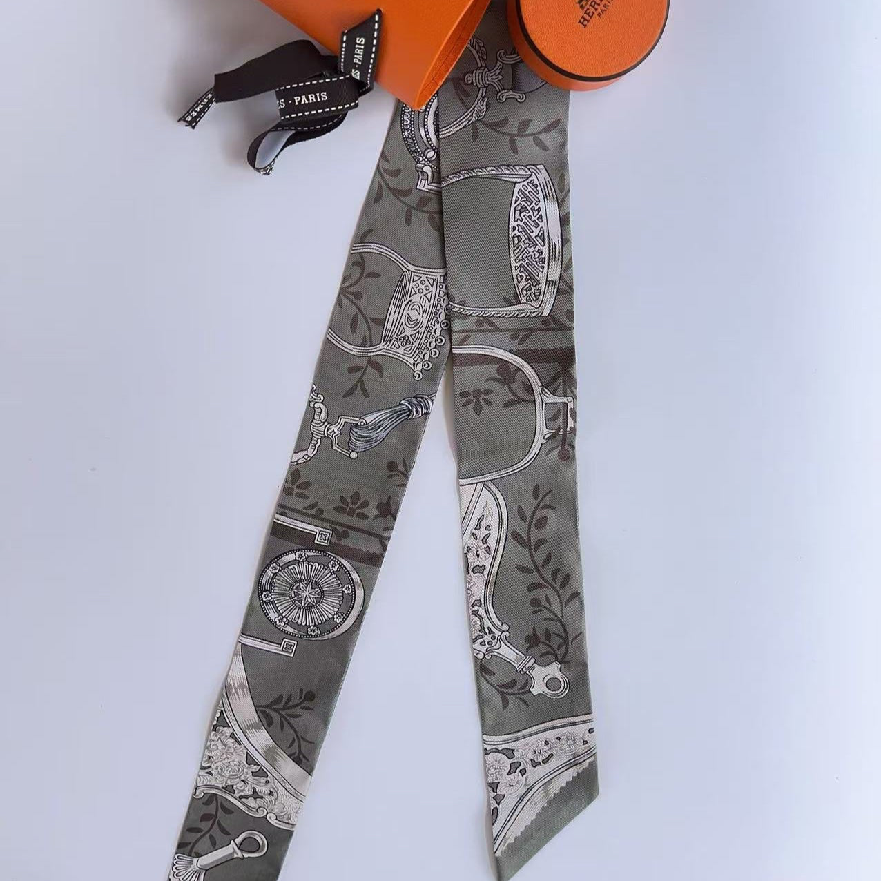 Hermès Hermes Twilly Scarf Muffler in Gray Silk Brown
