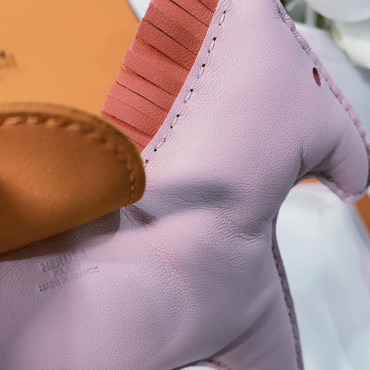 Hermès Milo Lambskin Grigri Rodeo Horse Bag Charm Mauve Sylvestre Craie Chai