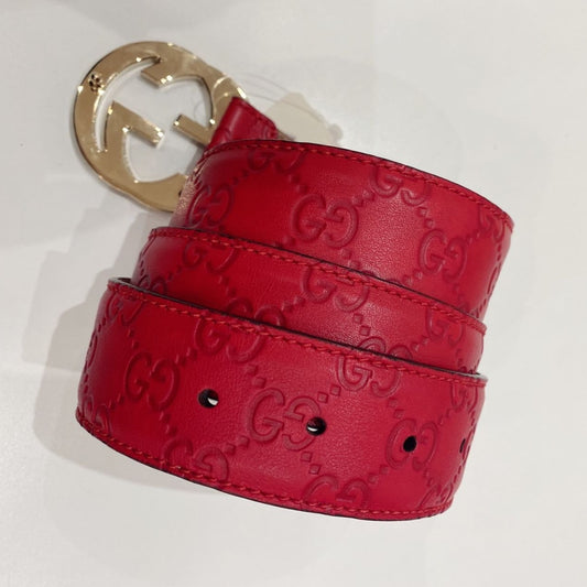Gucci Interlocking G Monogram Gold GG Buckle Leather Belt pink