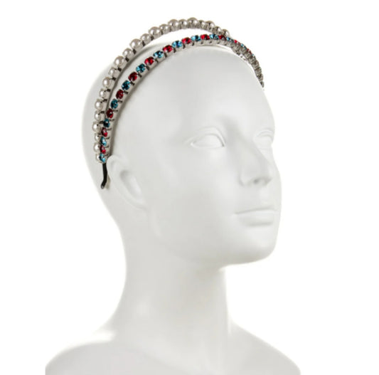 Miu Miu Crystal and Pearl Embellishment Headband