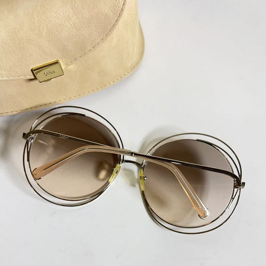 Chloe Gold Tone Brown Gradient CE114S Carlina Round Sunglasses