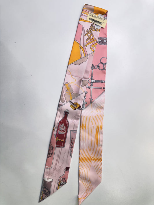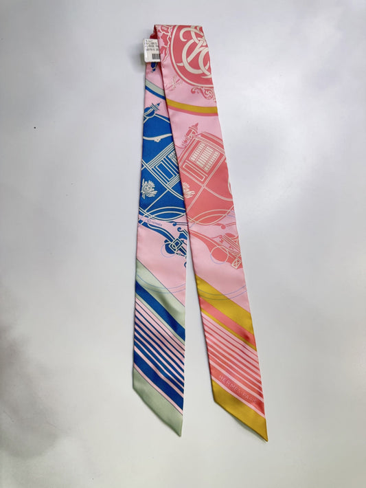 Hermes Silk Caleche Mors Bouteilles Twilly Rose Jaune Gris NWT
