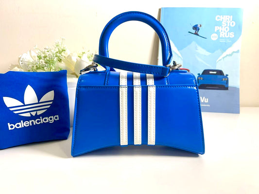 Balenciaga + adidas Hourglass XS striped leather tote New