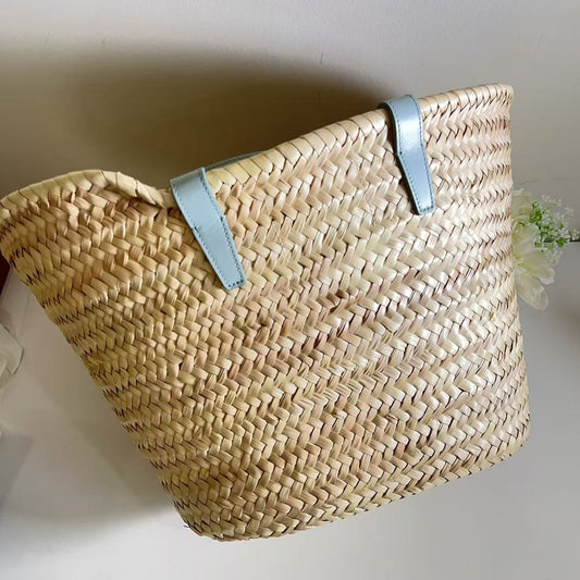 Celine Raffia Calfskin Triomphe Classic Panier Medium Panier Soft Blue