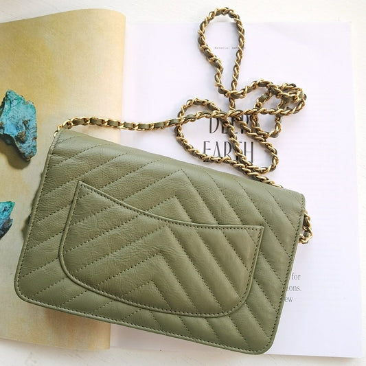 CHANEL Calfskin Chevron Wallet On Chain WOC Flap Mocha