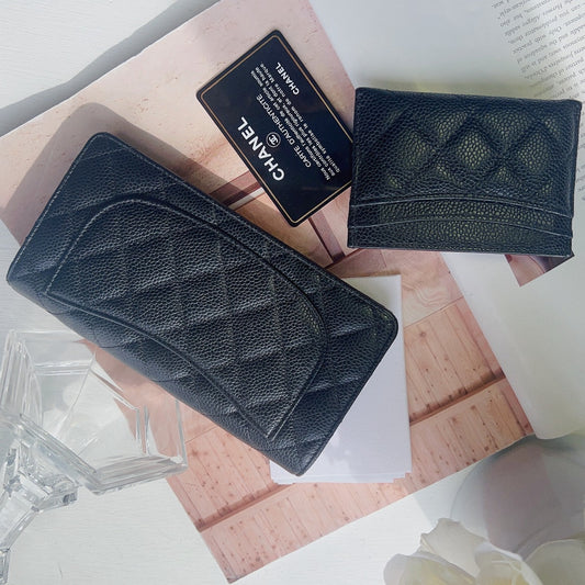 Chanel Caviar Long Flap Wallet Black Gold