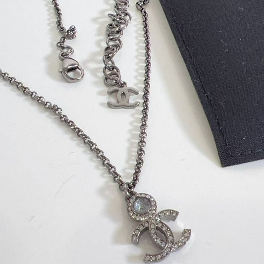 Chanel COCO Mark Necklace Rhinestone Gunmetal