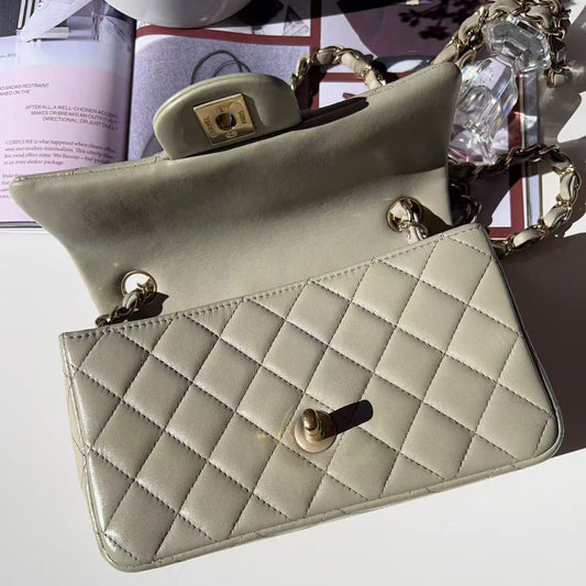 Chanel Lambskin Quilted Mini Rectangular Flap Grey