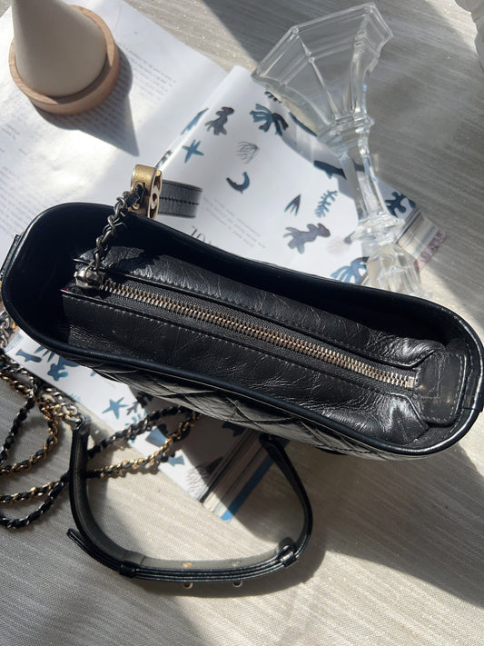 Chanel small Gabrielle Aged Calfskin Quilted Hobo Black