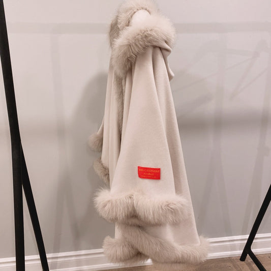 Balmain Cashmere Faux Fur Coat Beige Hooded Cape