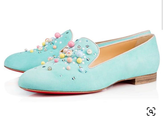 Christian Louboutin Candy Beaded Studded Loafers Tiffany Blue Size35
