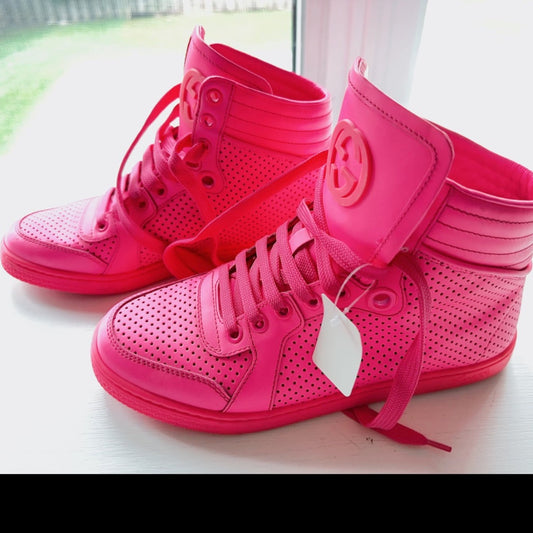 Gucci Neon Pink Leather Interlocking G High Top Sneakers Size35.5