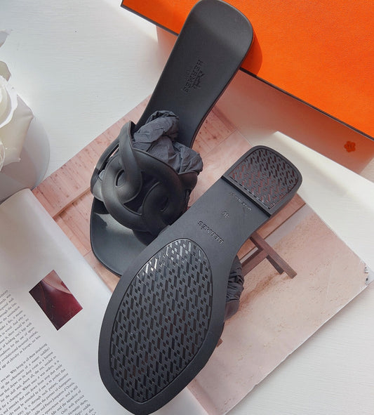 Hermès Black Aloha Rubber Slide Sandals Size40 New