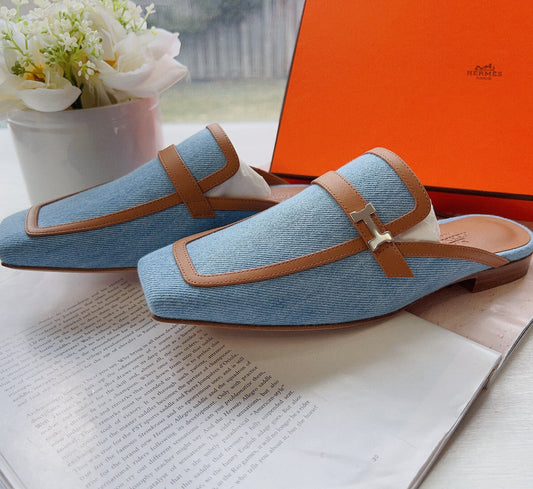 Hermès Grub Moore Denim Leather Slipper Size36 New