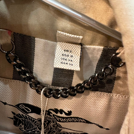 Burberry Queensborough Leather-Trim Trench Coat Beige Size US 0