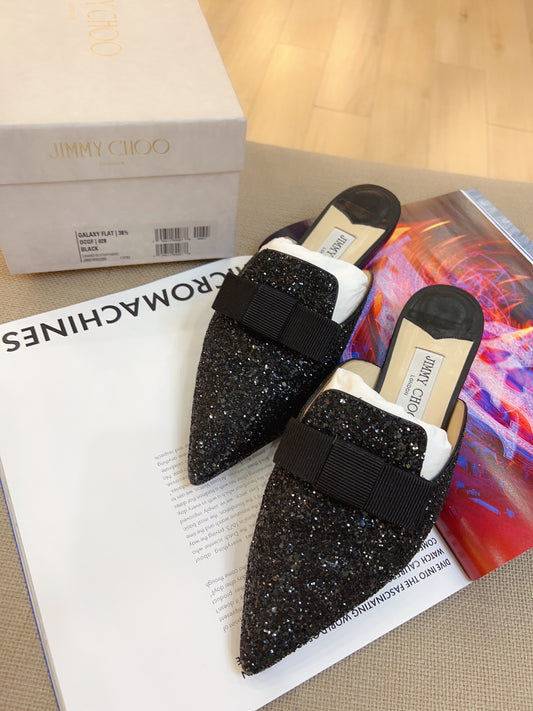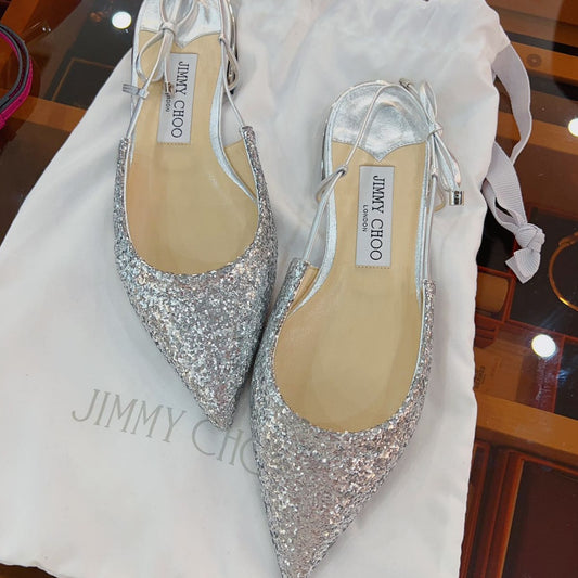 Jimmy Choo Silver Glitter Pointed Slingback Flats Size36