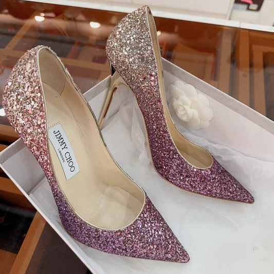 Jimmy Choo Pink/Gold Boho Coarse Glitter Degrade Size37