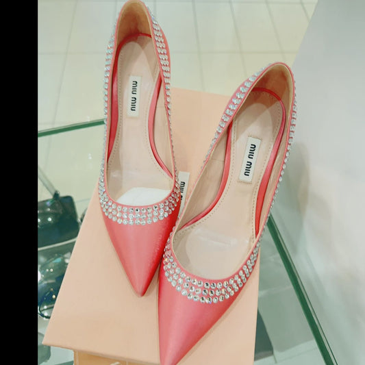 Miu Miu Crystal-embellished Satin Pump Size36.5