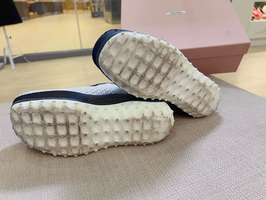 Miu Miu Pointed Metal Cap Toe Skate Leather Sneakers Shoes Size 37.5