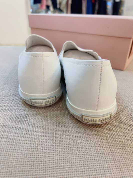 MiuMiu Pointed Metal Cap Toe Skate Leather Sneakers Size35