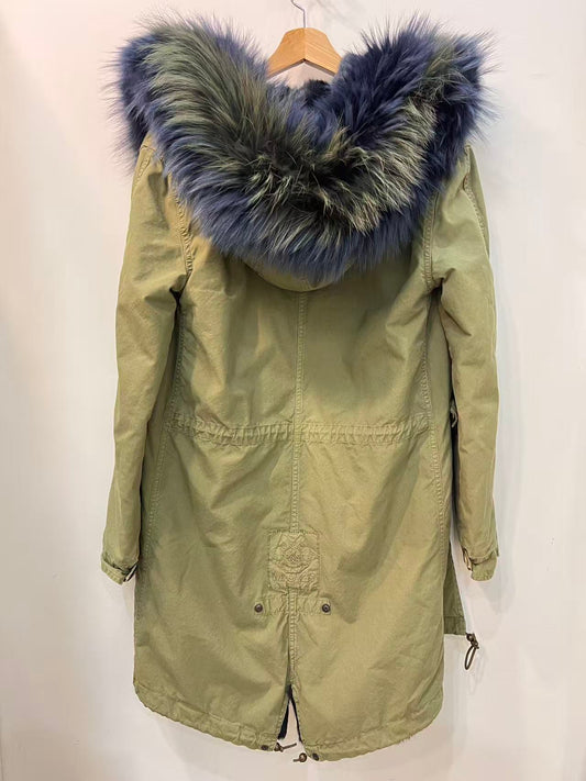 MR & MRS ITALY Green Quilted Parka w/ Fur Hood, size S