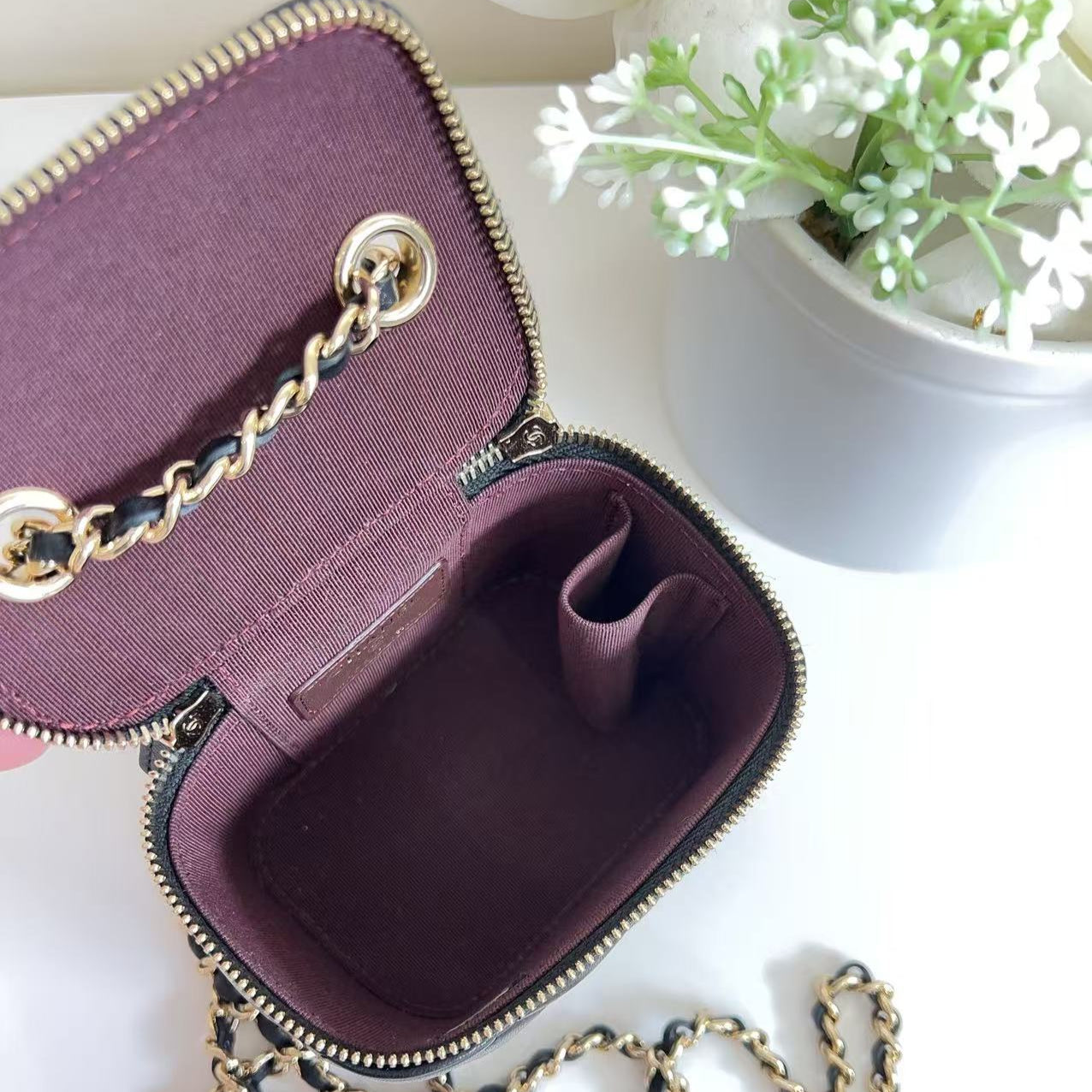 Chanel Lambskin Quilted Trendy Mini Vanity Case With Chain Black New