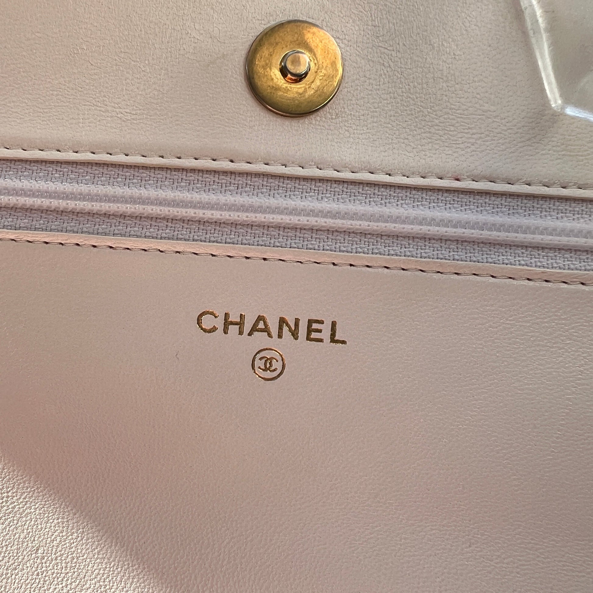 - Interlocking CC Logo, Quilted Pattern & Chain-Link Accent