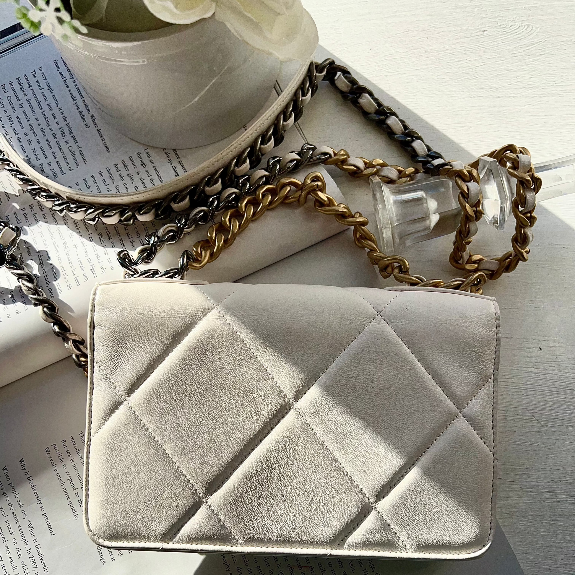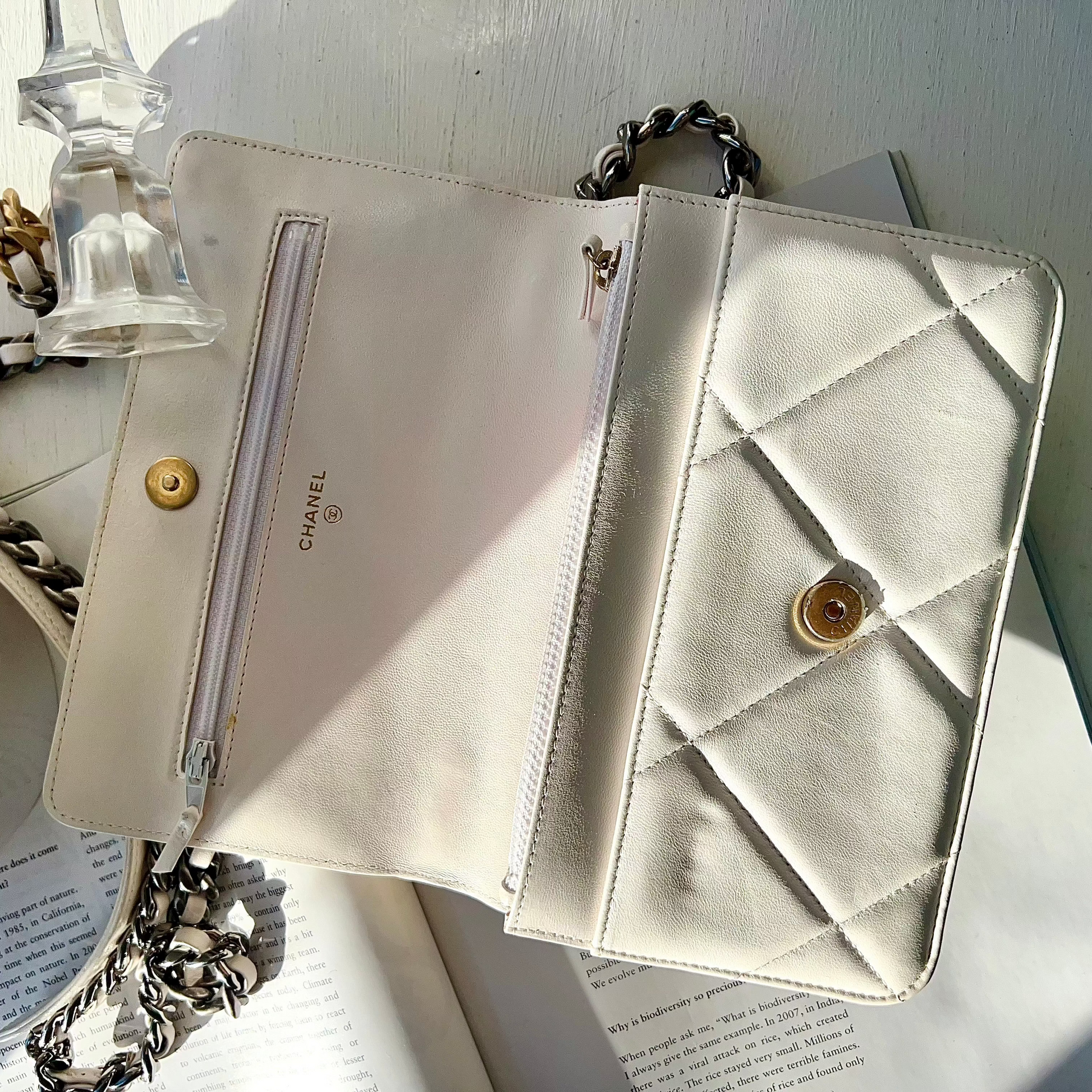 Chanel Quilted 19 Wallet On Chain White