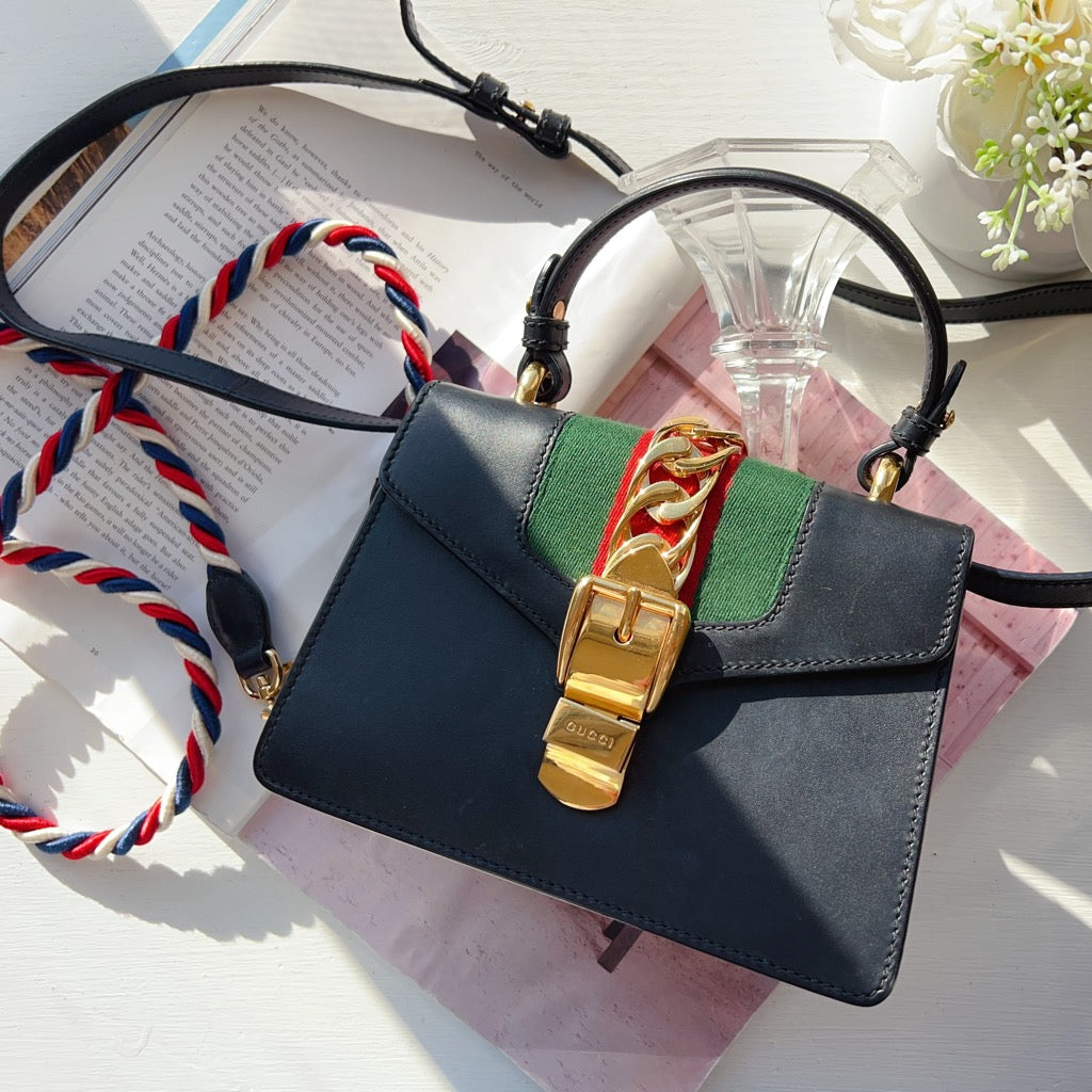 Gucci Calfskin Mini Sylvie Top Handle Bag Black