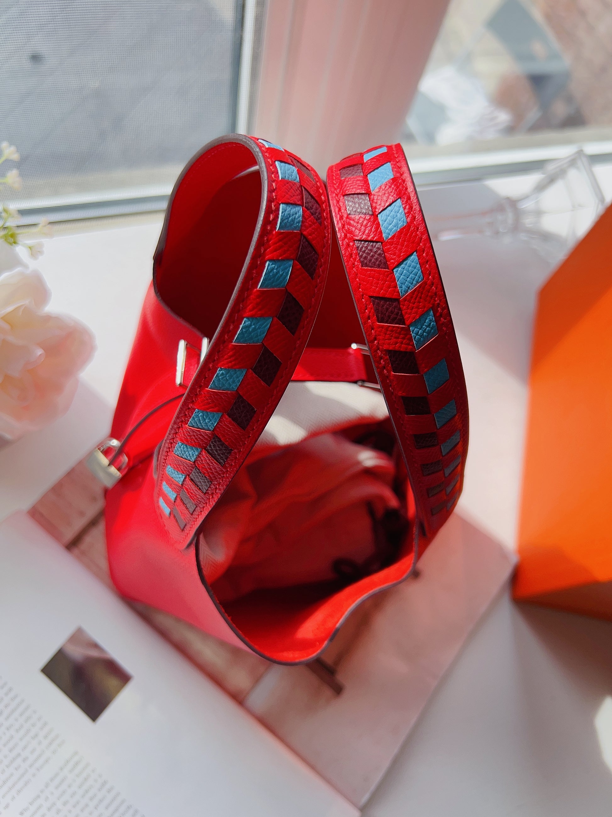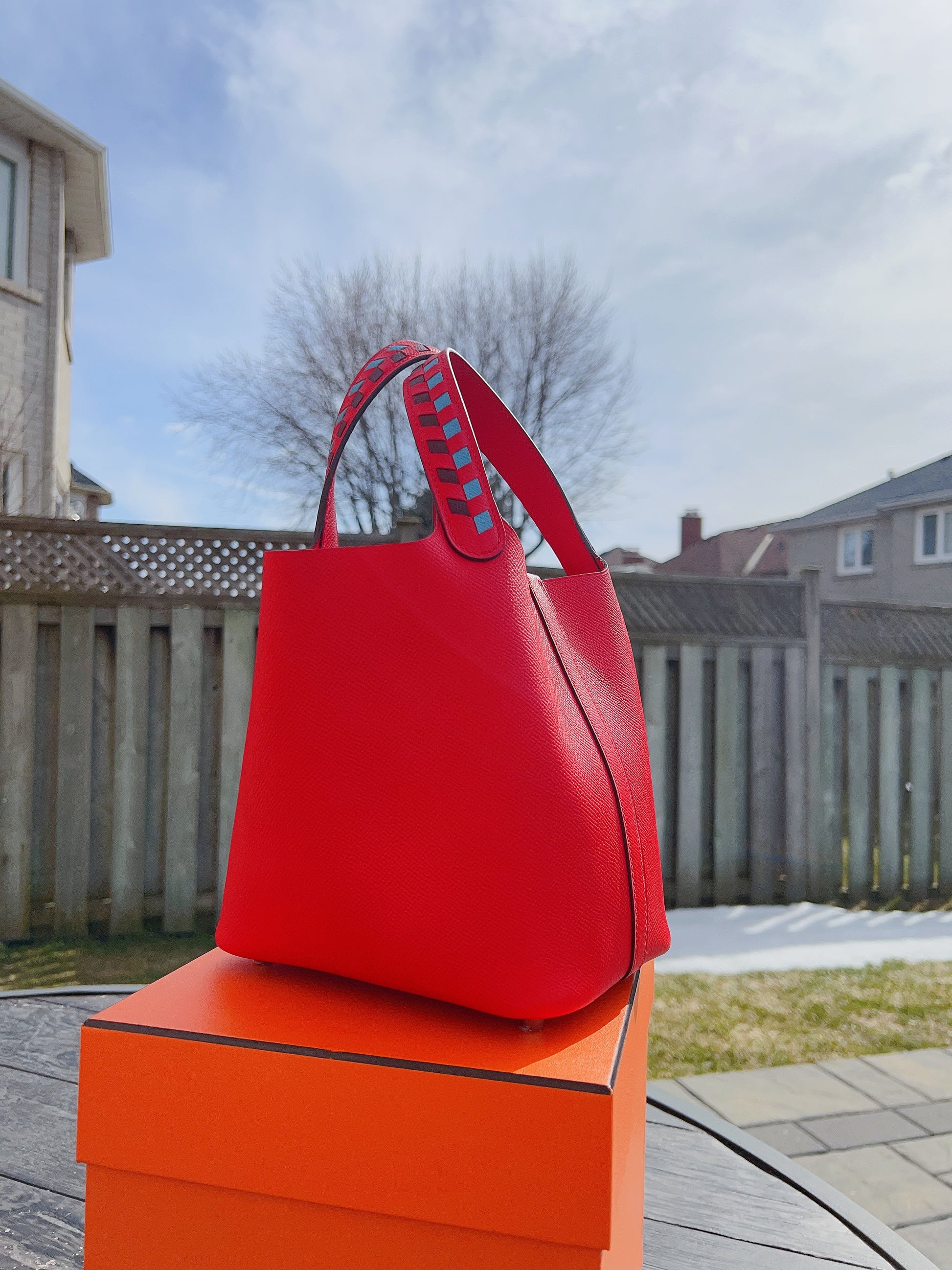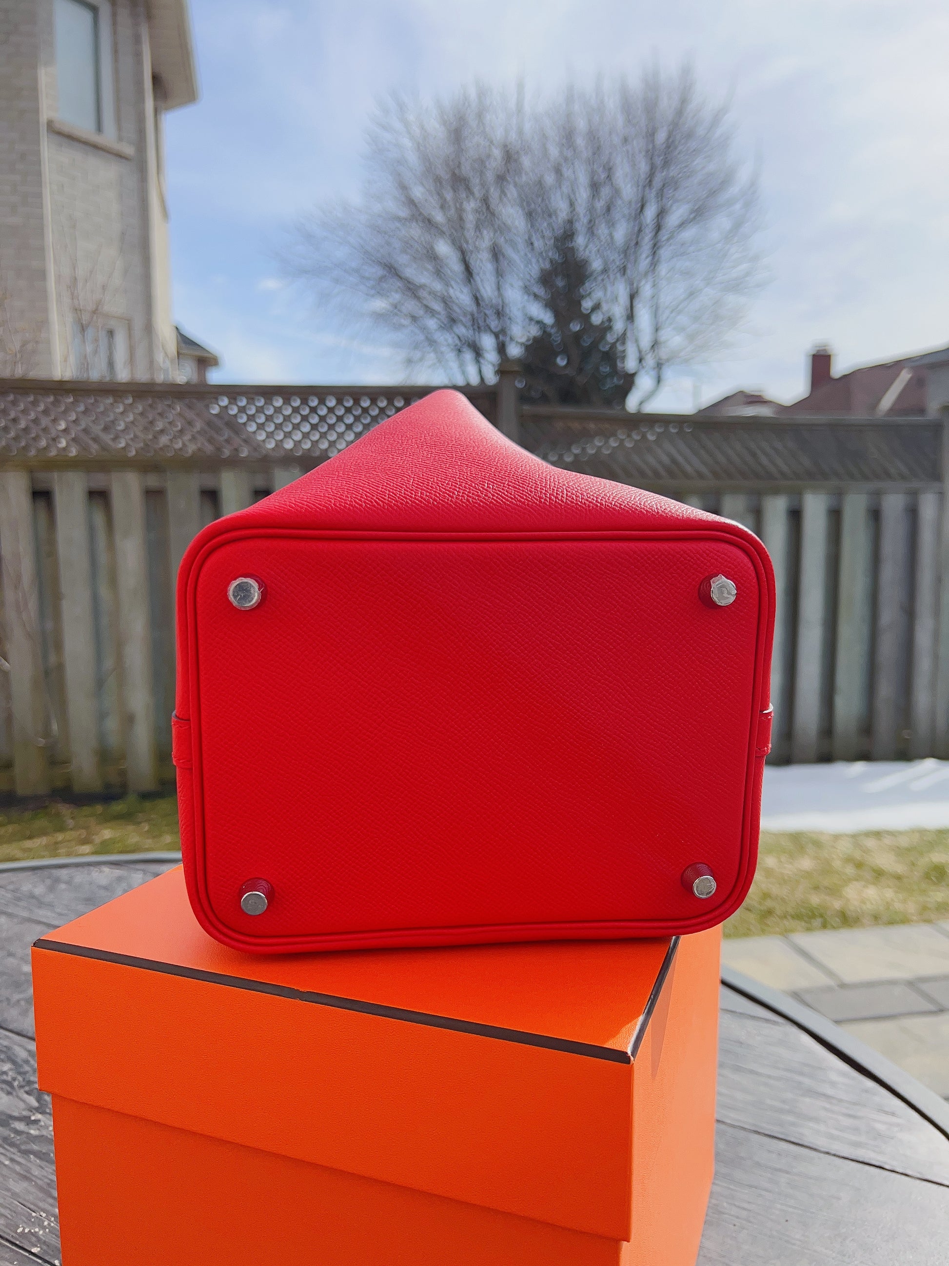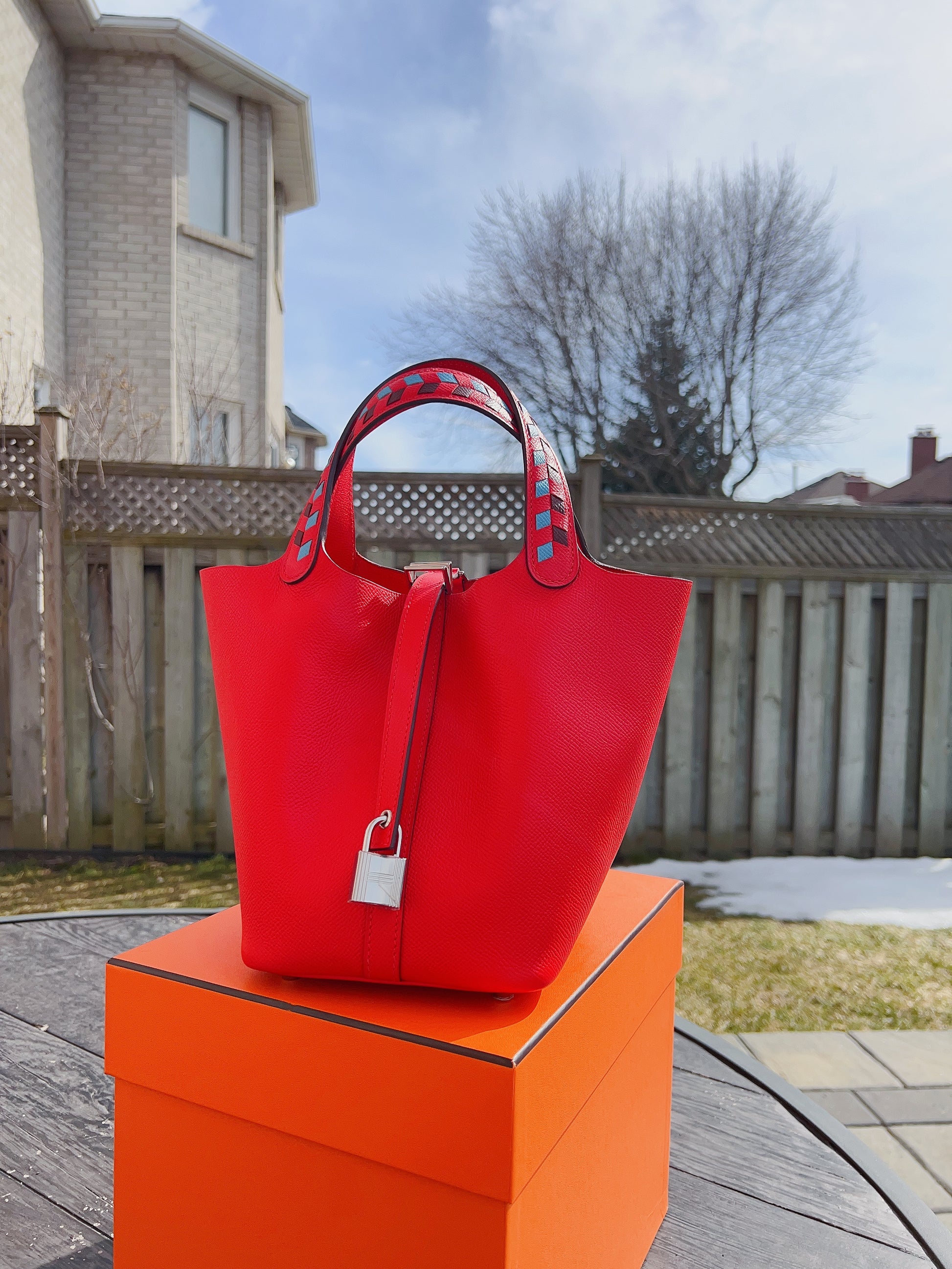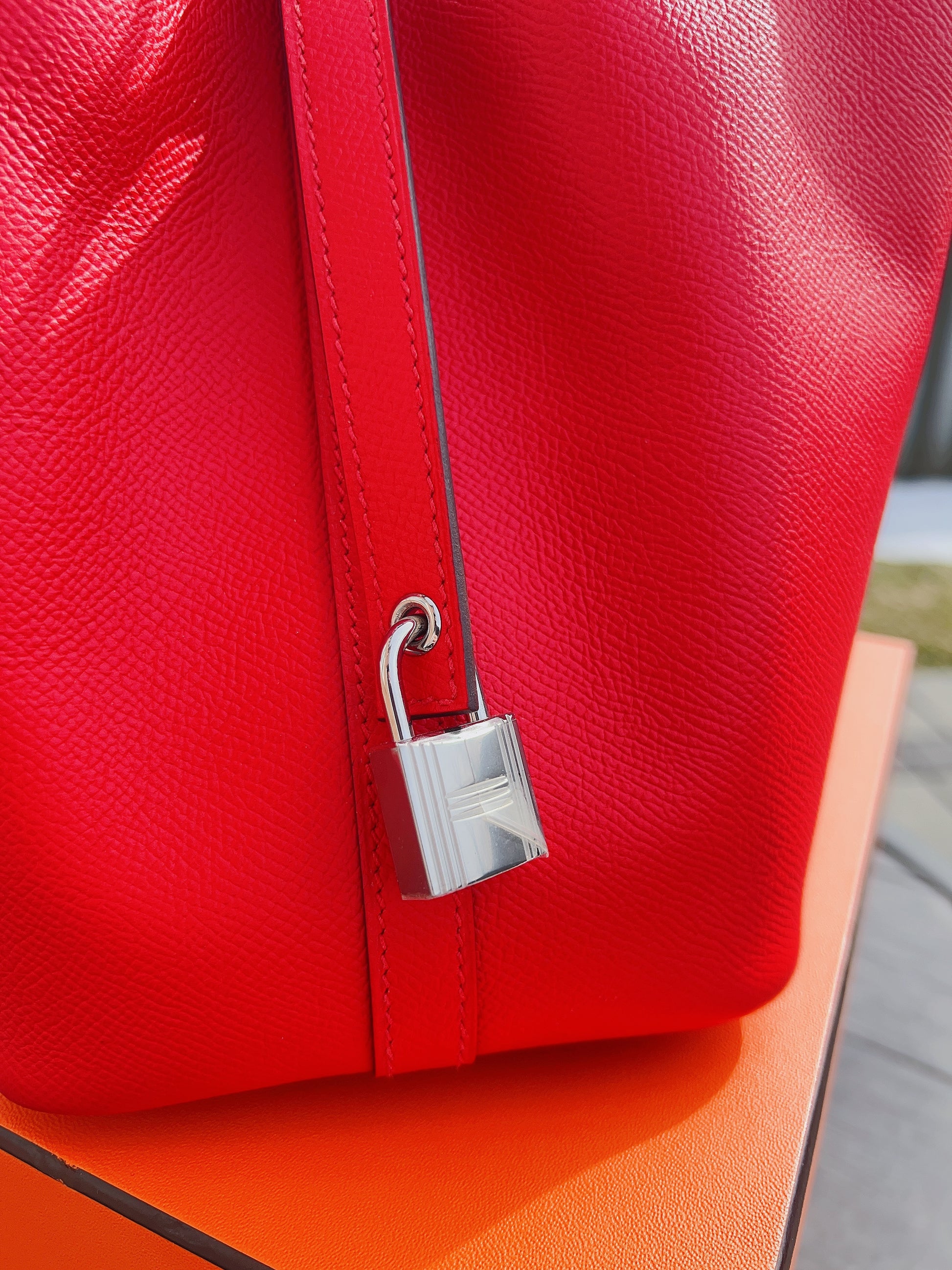 Hermes Epsom Tressage De Cuir Picotin Lock 18 PM Silver Rouge