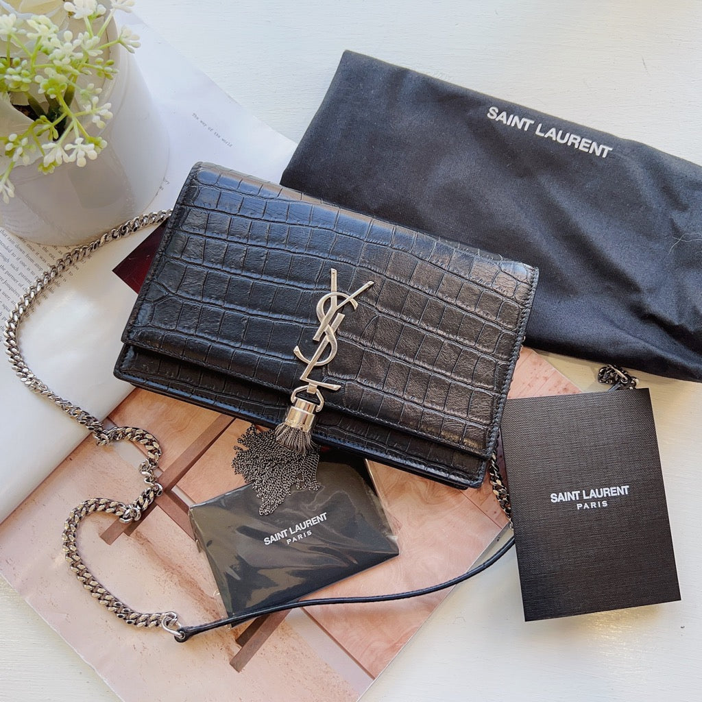 Saint Laurent Croc-Embossed Kate Crossbody Chain Wallet
