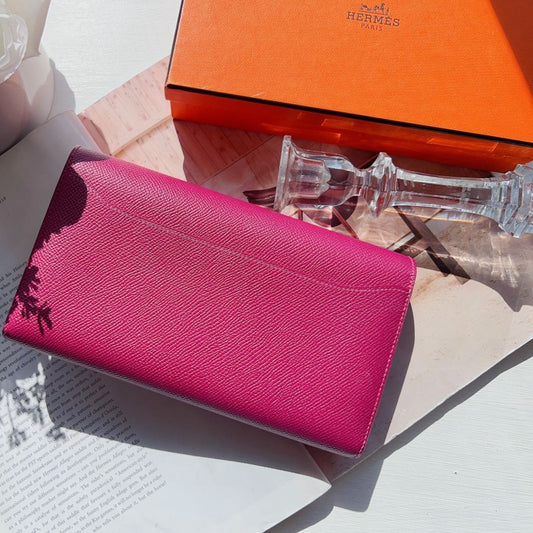 Hermès Epsom Evercolor Constance Long Wallet Rose Pourpre