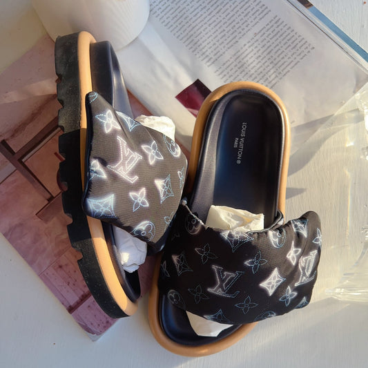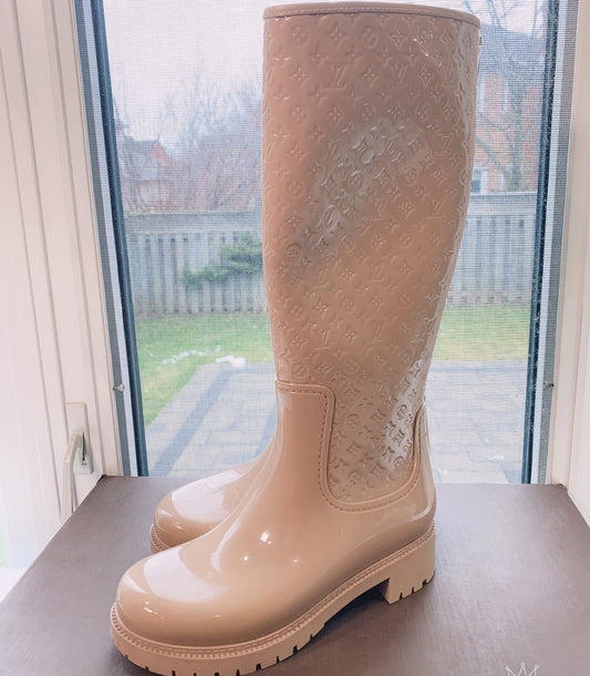 Louis Vuitton Rubber Embossed Monogram Splash Rain Boots Beige