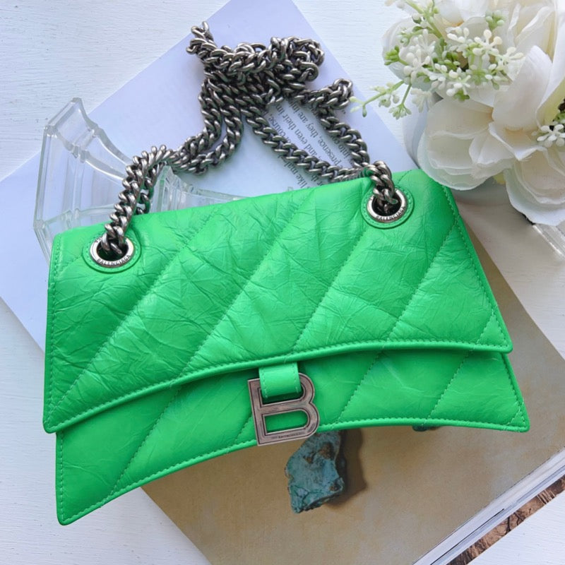 Balenciaga Crush Chain Bag S Quilted Calf As Vivid Green