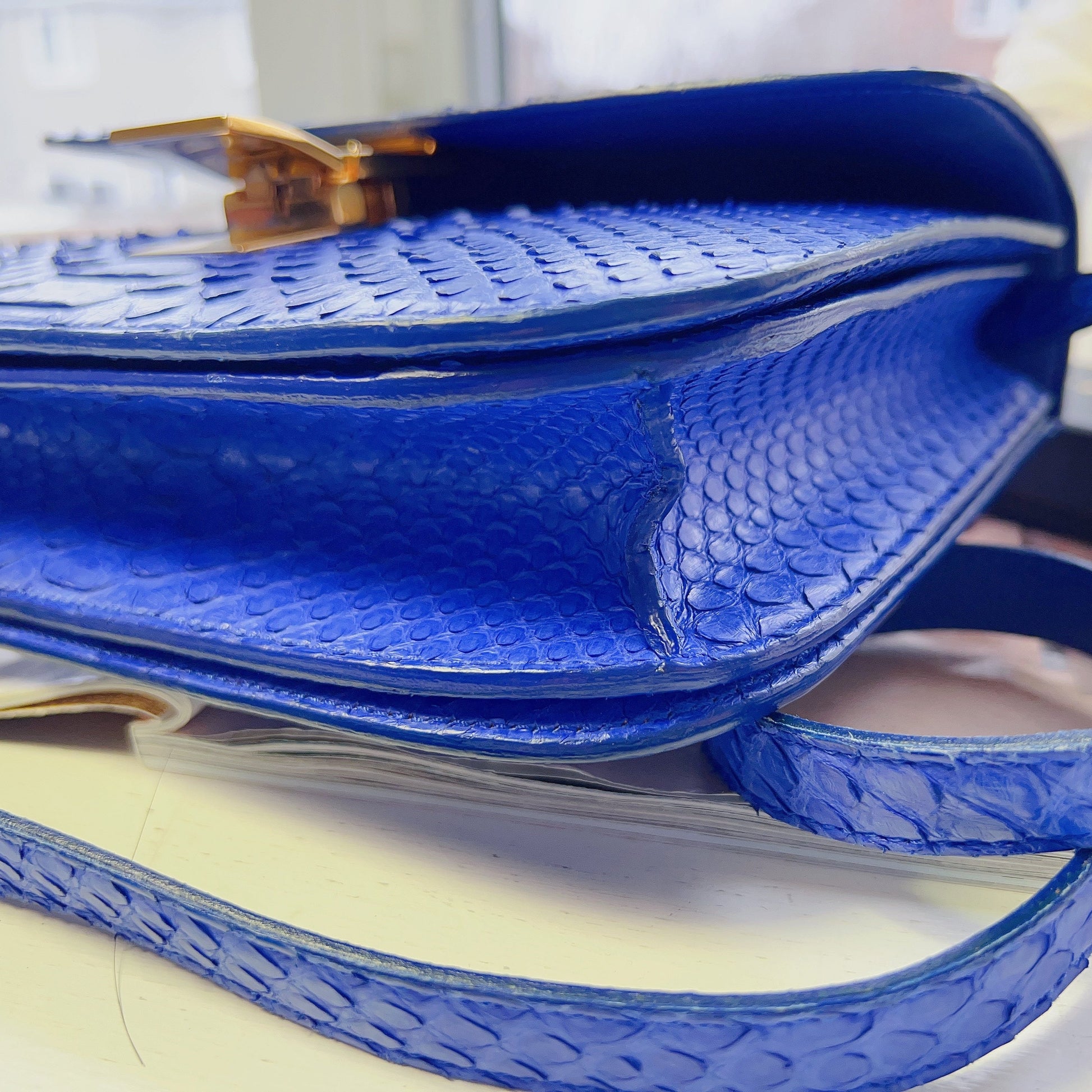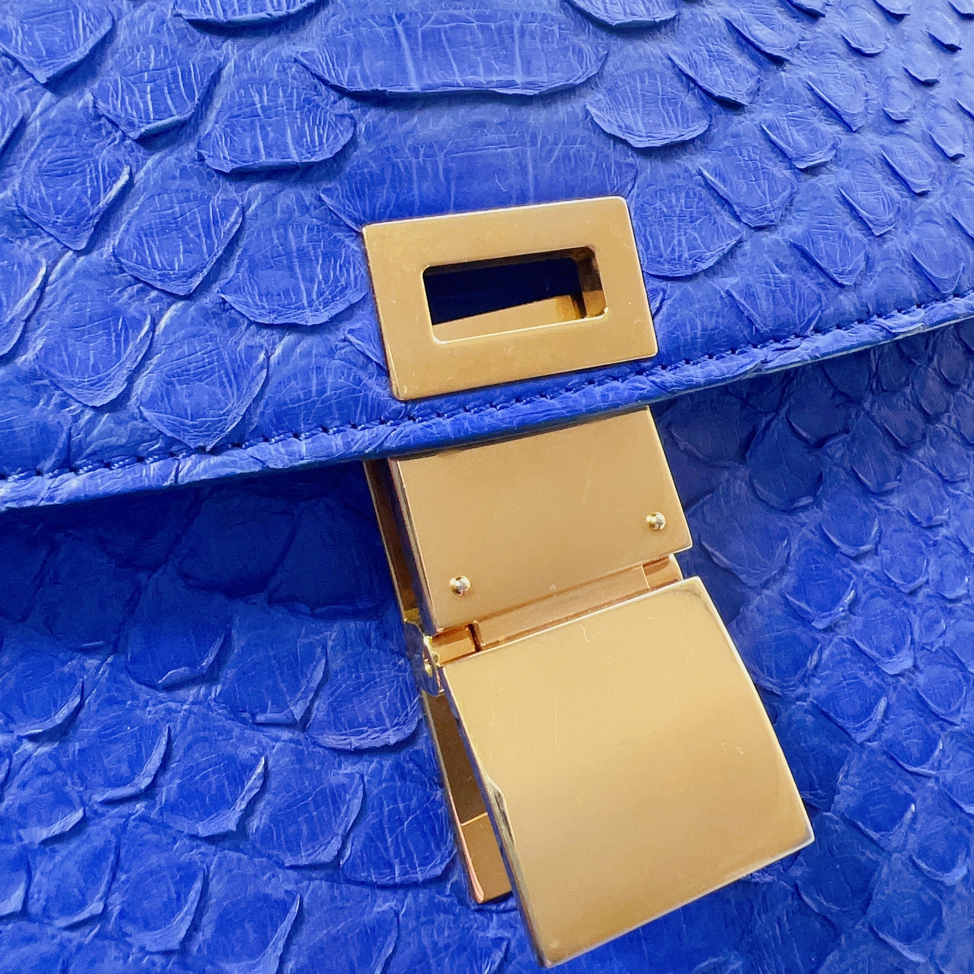 Celine Python Royal Blue Box GHW Medium Flap Handbag Cross Body Bag
