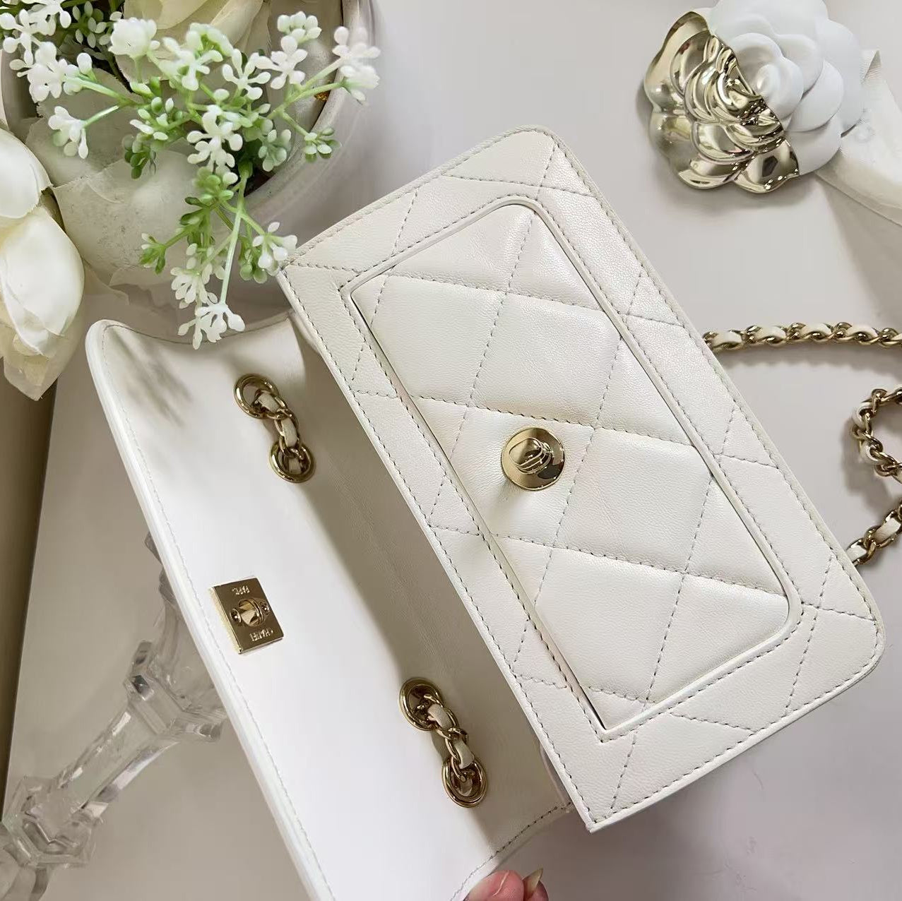Chanel CC Front Pocket Flap Bag Stitched Calfskin Small White