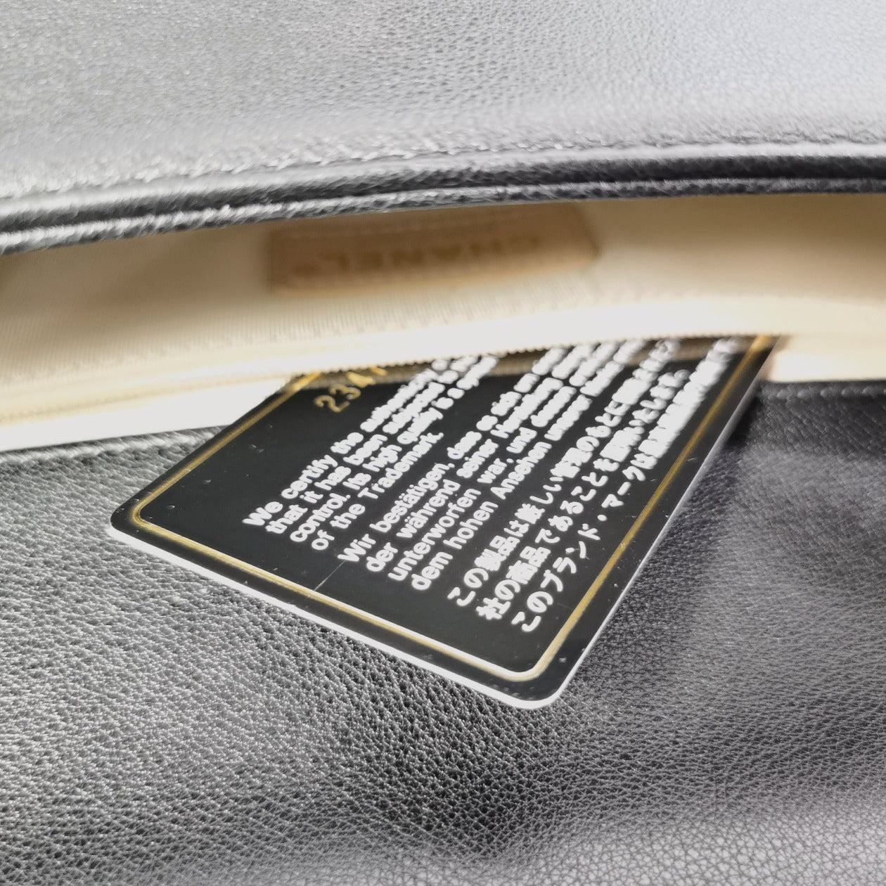 Chanel Quilted Caviar Label Click Flap Leather Top Handle Bag Black