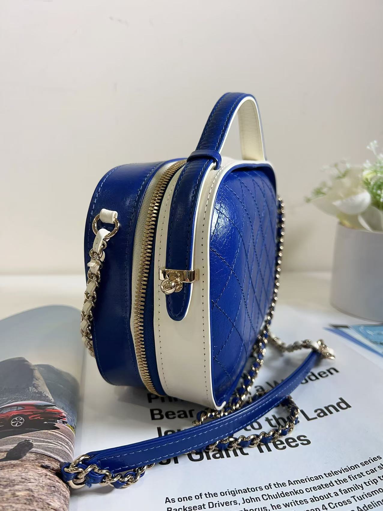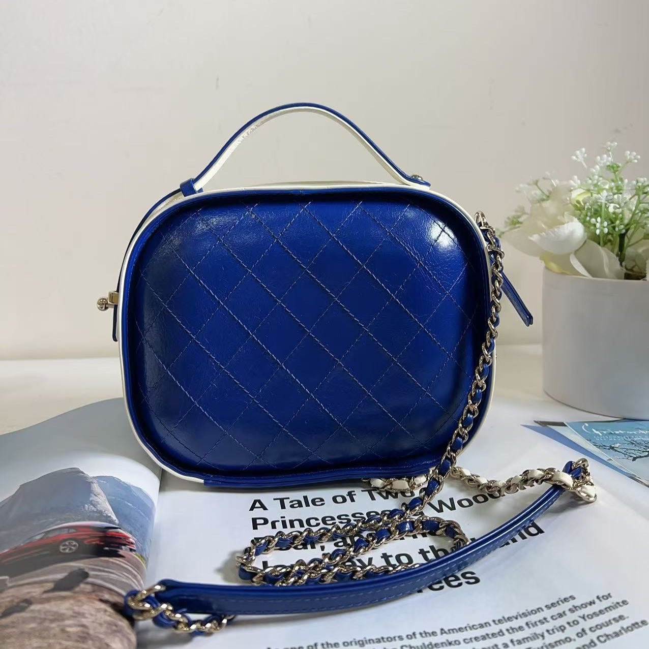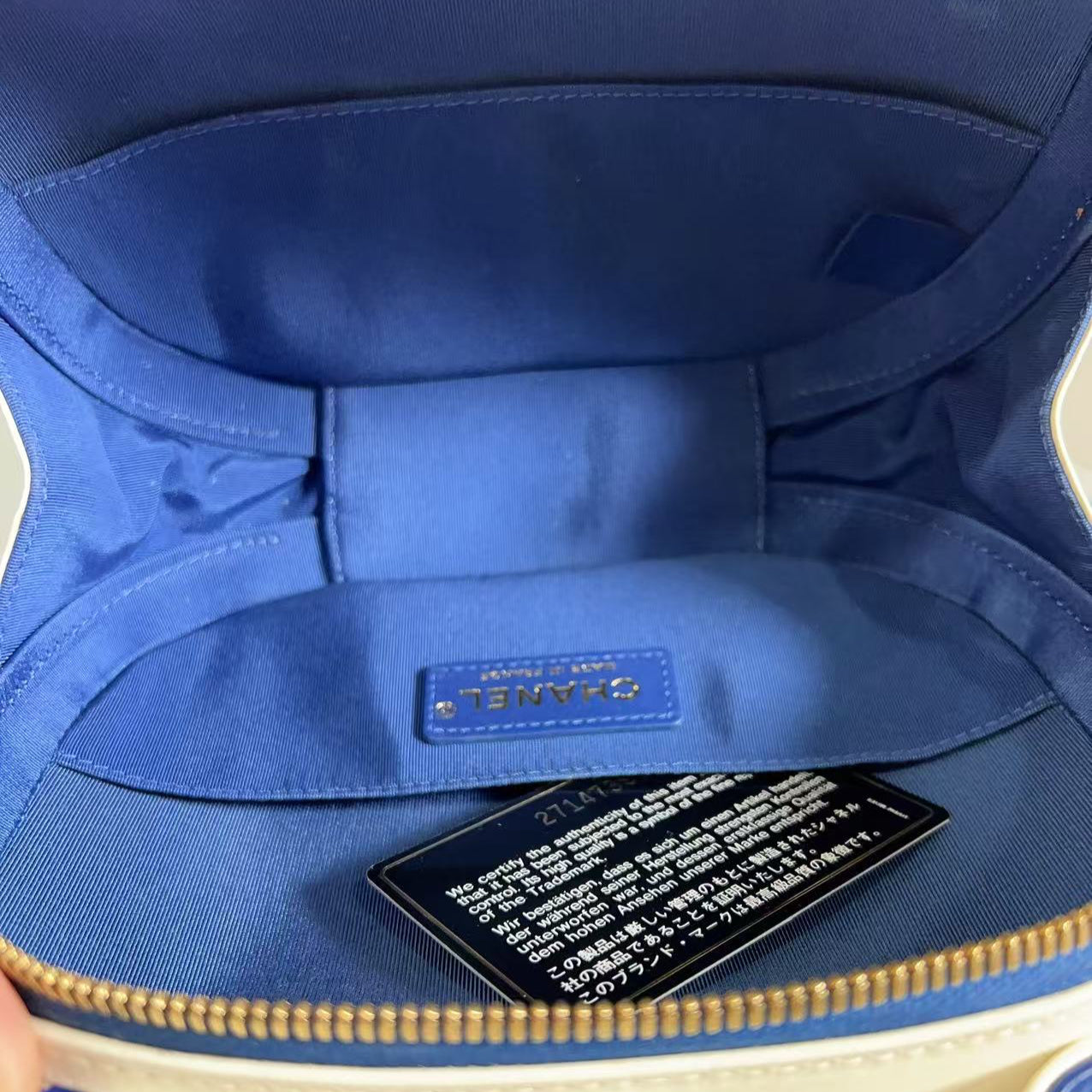Chanel Vanity Case Blue and White Crumpled Calfskin Bag
