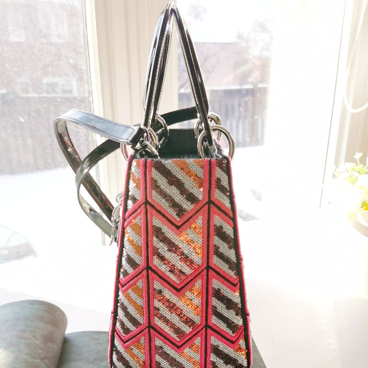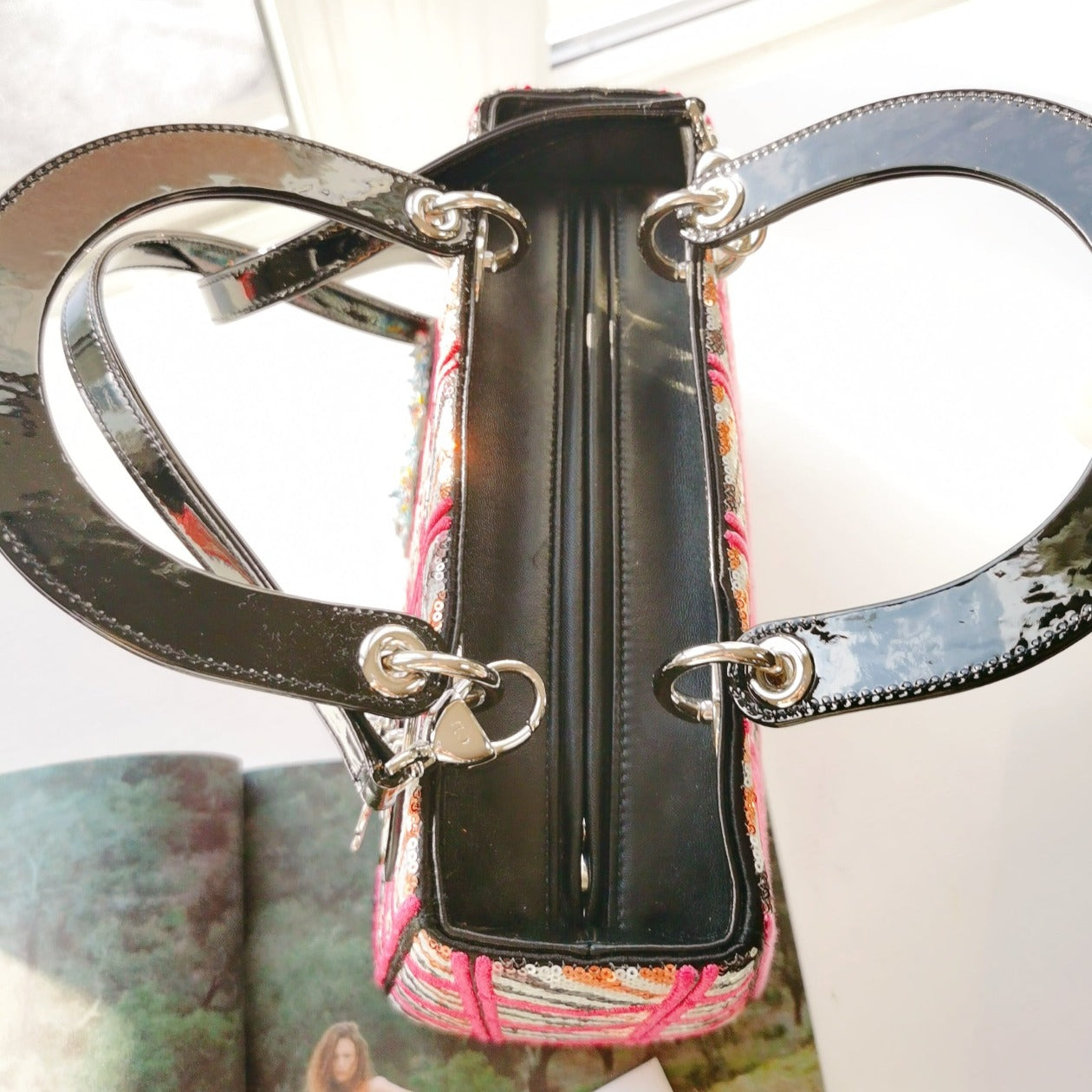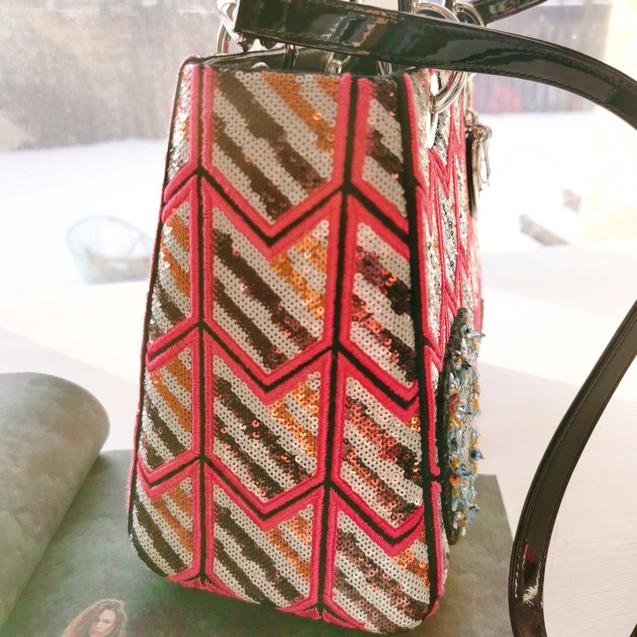 Christine Dior Pink Multicolor Sequin Medium Bag Silver Hardware