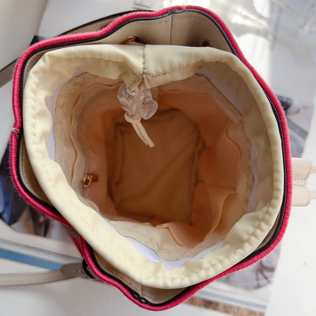 Fendi White Mini Canvas Embroidered Logo Bucket Mon Tresor