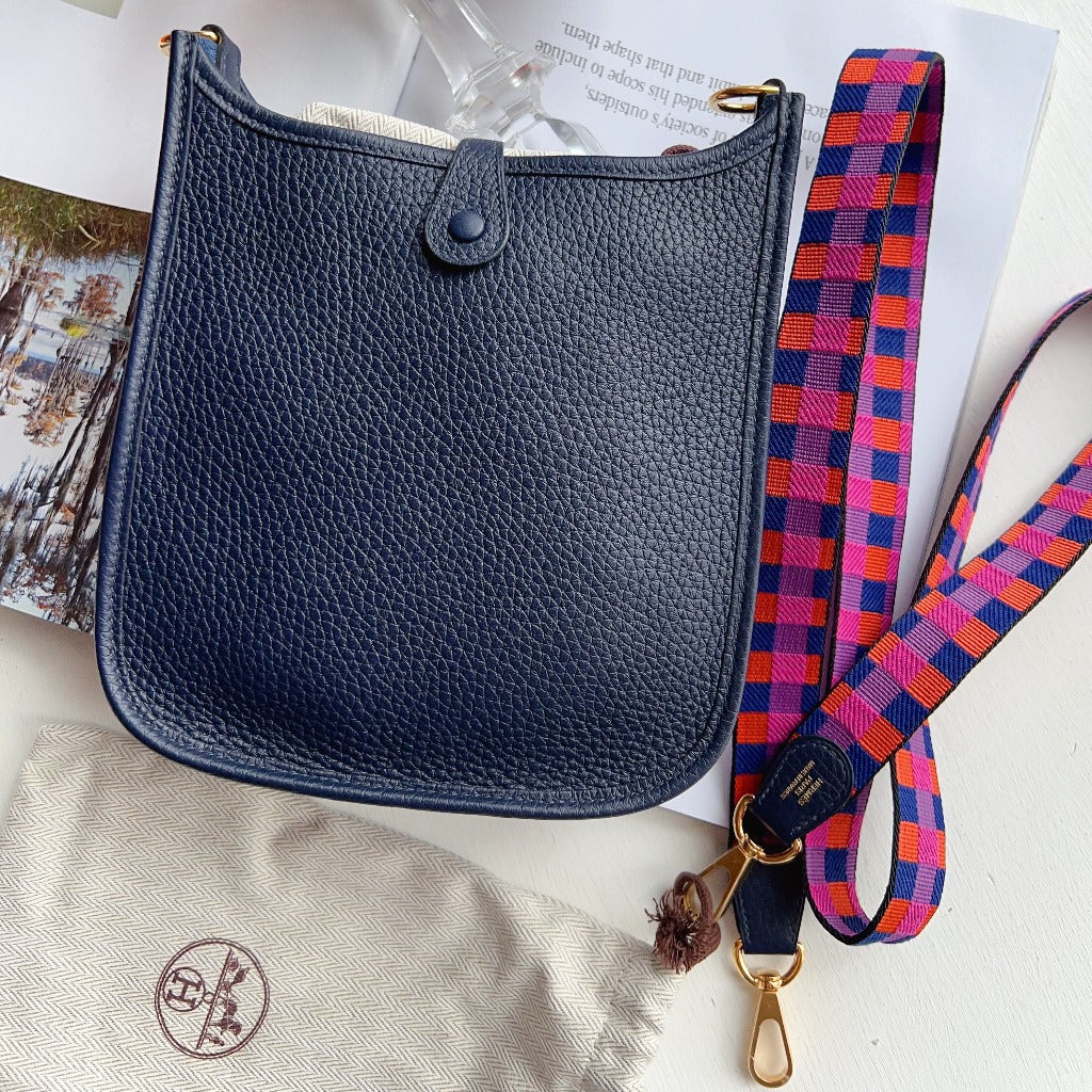 Hermès Mini Evelyne 16 Bleu Nuit / Blue Saphir Clemence Gold Hardware