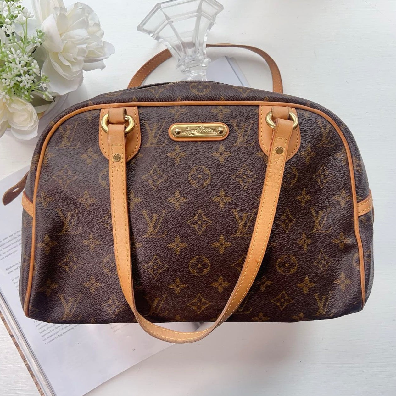 Louis Vuitton handbag Crafted from their signature monogram canvas and leather trims, this bag features two top handles, a top zip closure for quick access and one pocket inside.