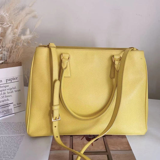Prada Single Zipper Medium Saffiano Yellow Leather Handbag