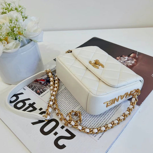 CHANEL 2021 WHITE LAMBSKIN SIDE NOTE SQUARE FLAP CROSSBODY