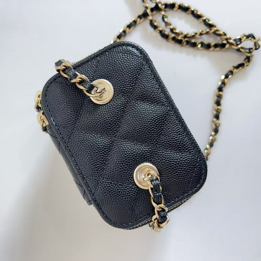 CHANEL Caviar Quilted Mini Vanity Case With Chain Black New