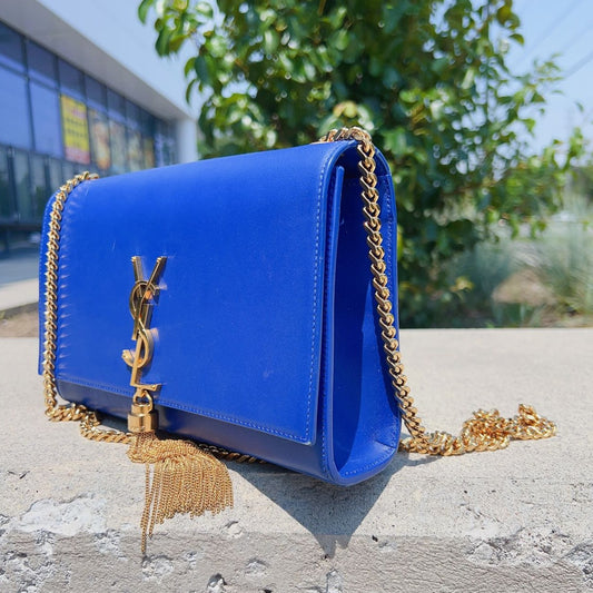 Saint Laurent Smooth Calfskin Medium Classic Monogram Kate Tassel Satchel Blue